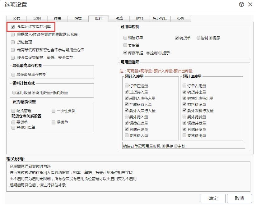 所以如果您遇见了无法允许零库存出货的情况的话,可以先看看是否在“系统管理”—“选项设置”—“库存”页签已经设置了“仓库允许零库存出库”。如果设置无误,则可以进一步按照上述三种情况排查。