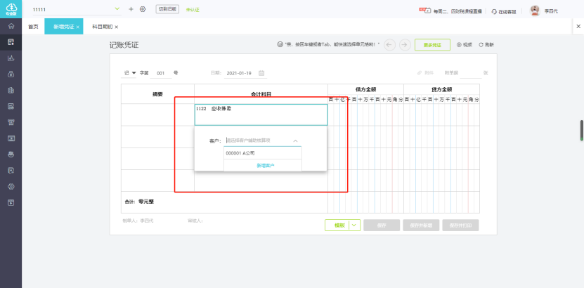 3.添加以后,录入凭证时科目会自动带出辅助核算项目: