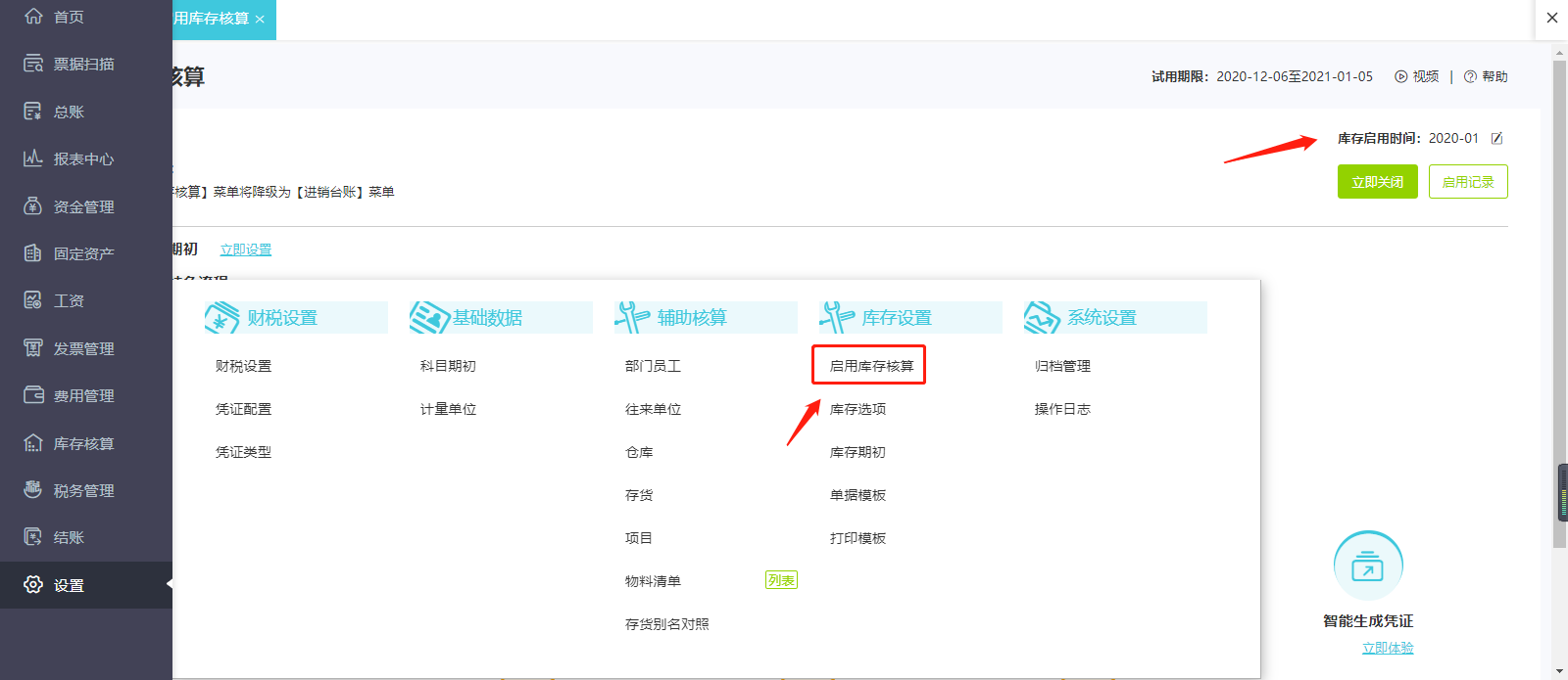 ⑥发票生成的出入库单据智能生凭证:(根据在匹配存货别名时,系统可自动创建存货)